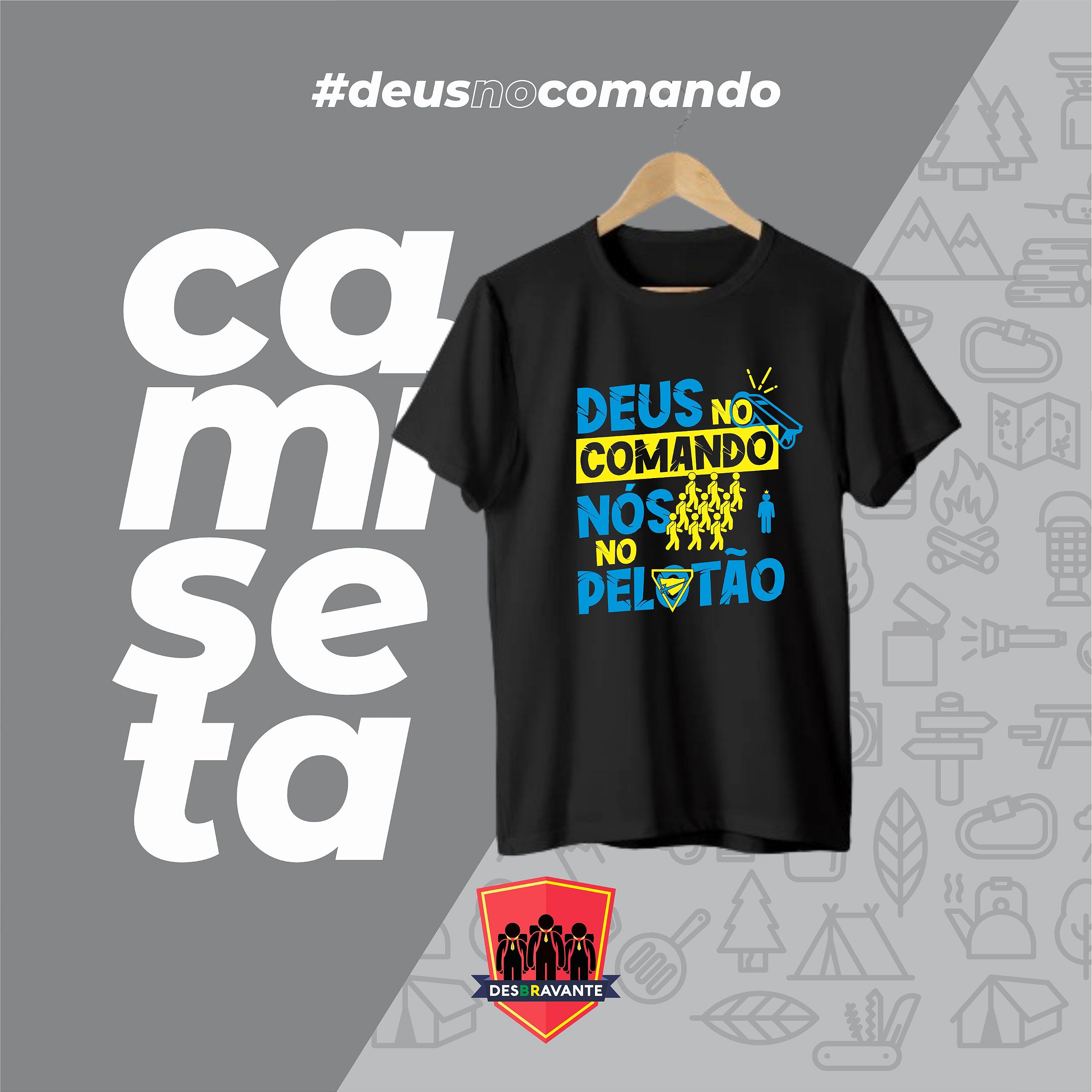 Camiseta "Deus no Comando Nós no Pelotão" - Se você é um Desbravador apaixonado por ordem unida, essa é a camiseta ideal para você.
